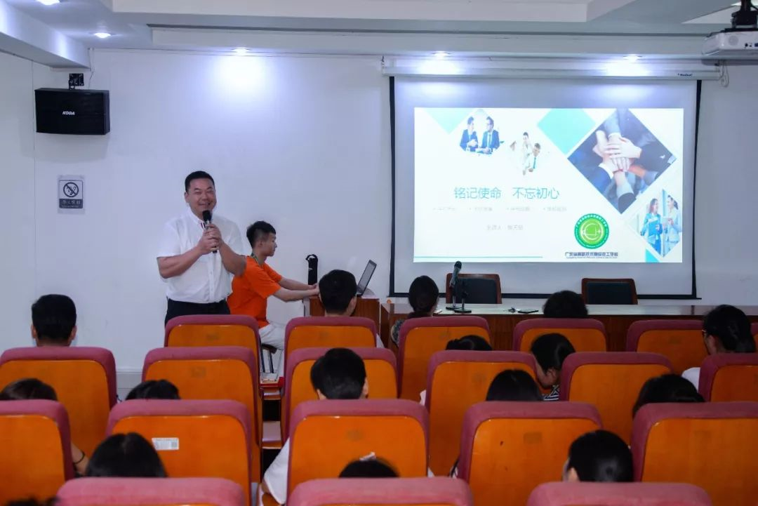 對于向技師學院出發(fā)的目標,高新教育集團董事長、廣東省高新技術高級技工學校校長張?zhí)炫嘧鞒隽?ldquo;銘記使命,不忘初心”為主題的講話。