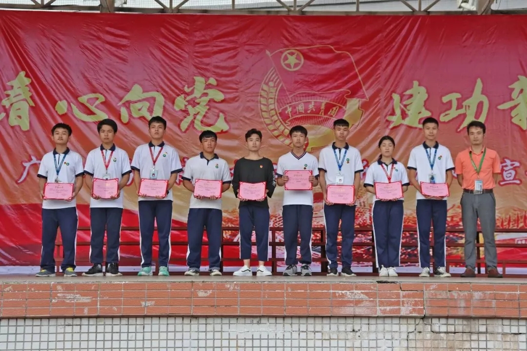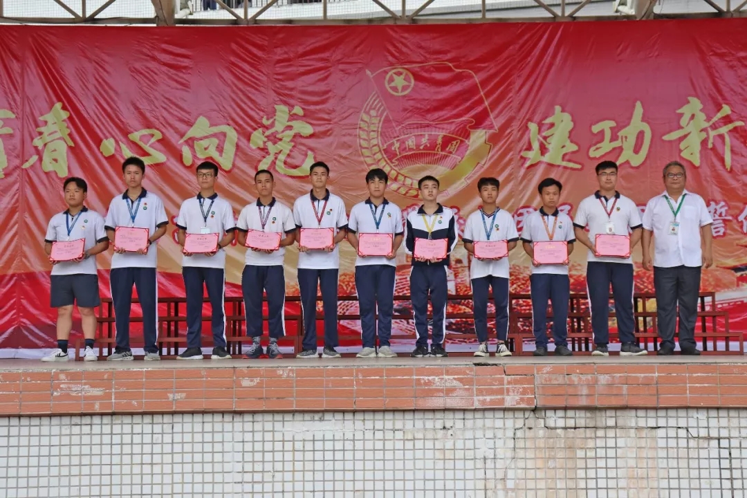 廣東省高新技術高級技工學校新團員入團宣誓儀式暨優秀團組織表彰大會于2019年5月27日16:10在西區足球場隆重舉行。參加本次大會的領導有:文建友副校長、學生處曾成處長、學生處陳偉副處長、團委書記劉榮榮、汽車工程系鄭大國主任、藝術與計算機系王慶有副主任、經貿系姚幸連副主任。參加大會的還有在校1833名團員。