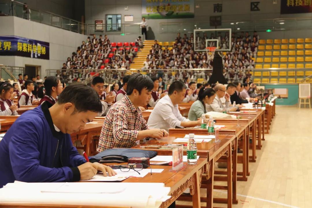一進入健行館,一股書香氣息便迎面撲來——只見偌大的館內,規規整整地擺放著一列列古色古香的桌椅,上面都工工整整擺放著文房四寶——筆、墨、紙、硯。是的,體育館似乎不再是體育館了,而是一座具有深厚人文底蘊的書房。