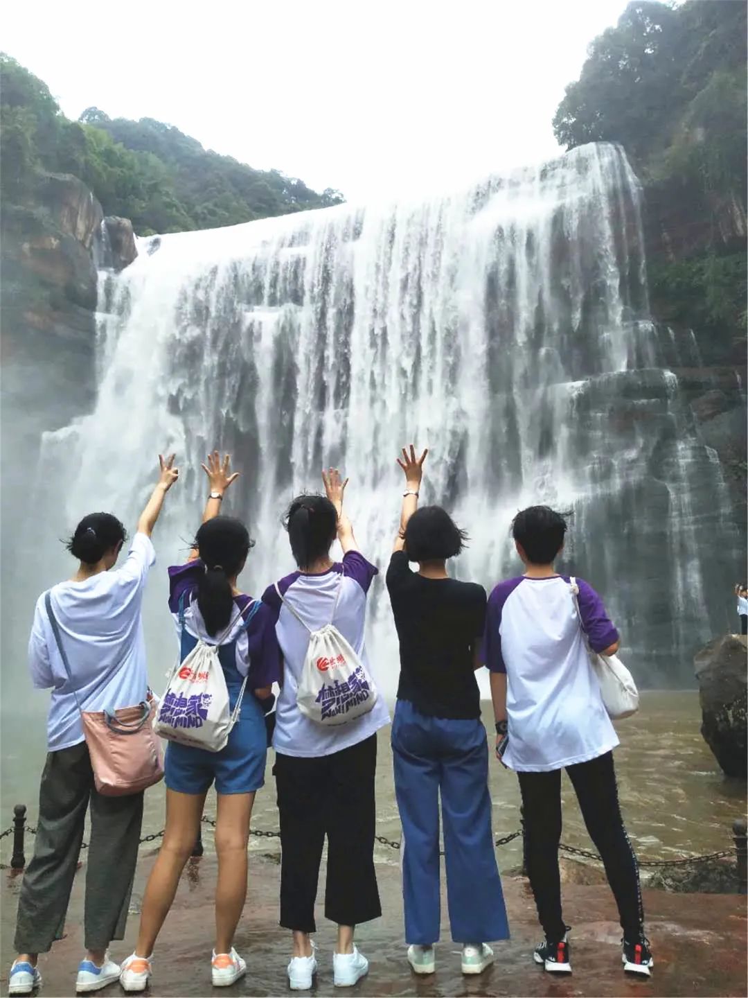 從石間縫隙中穿過,從山間小路上踏過,未見其景先聞其身,隆隆的聲響令人激動不已。轉過一個角落,眼前驟然明亮,萬千白絲傾瀉而下,編織成白綾,似從天上拋下。白煙帶著飛濺的水珠撲面而來,宛如身體內不斷沸騰的血液,回想幾天前走過的丙安古鎮(zhèn),參觀過的紅軍物品陳列館,不禁將兩者相聯(lián)。赤水瀑布傾瀉而下的是水流,是力量,是精神;嘶吼出的是氣勢,是心聲。悄悄的我走了,正如我悄悄的來,這一趟,我受益匪淺。