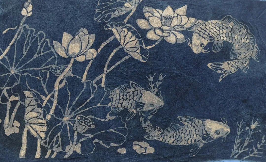 蠟染是用蠟刀蘸熔蠟繪花于布后以藍靛浸染,既染去蠟,布面就呈現出藍底白花或白底藍花的多種圖案。