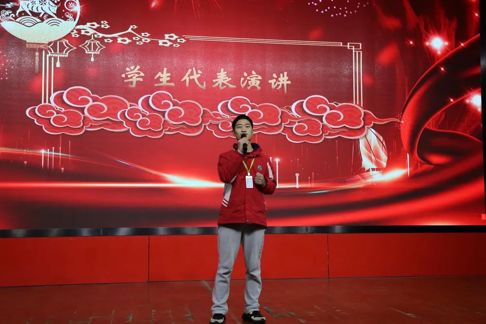 接著由學生代表906班石尚同學帶來精彩演講。他從自身真實經歷出發,向我們講述了一個剛上初中,只顧打游戲,毫無前進方向的“傻小子”蛻變成一名目標明確,踏實肯干,漸漸得到了大家認可的少年學子。他在演講中感謝父親對自己無言的付出,感謝老師對自己無私的幫助,感謝同學們對自己熱心的支持,他在全體師生面前許下承諾,繼續堅持,勤奮努力,在九年級最后的關頭,考入我校初中直升班,給自己一個最滿意的未來。